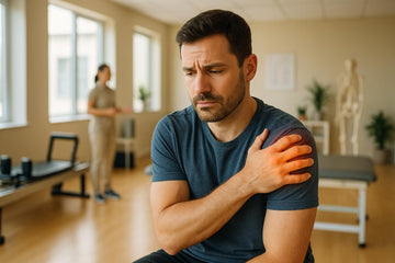 Search for 'shoulder pain' and hundreds of 'braces' appear. Research has proven that immobilizing a joint makes surrounding muscles weaker. To relieve pain, we need to strengthen muscles and increase blood flow to heal, not weaken shoulders.